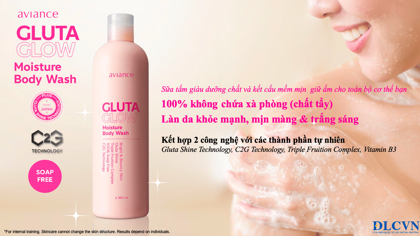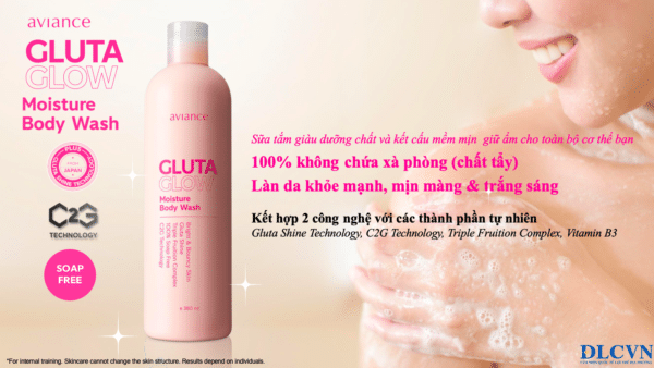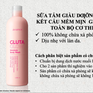 Aviance Gluta Glow Moisture Body Wash là 100% không chứa xà phòng, do đó nó là một công thức nhẹ nhàng giúp làm sạch mà không gây hại cho da. Nó giúp loại bỏ các tế bào da cũ xỉn màu cùng với việc làm mịn da với một lớp dưỡng ẩm đồng thời mang lại hương thơm tươi mát của Secret Garden.